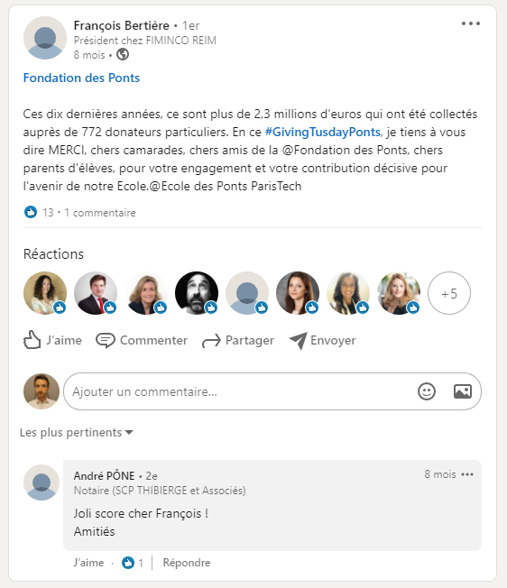 “Bravo à toutes les activités de la Fondation et au soutien de la communauté des Ponts.”