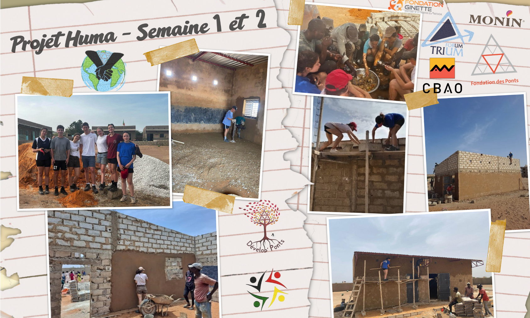 ”Nous tenons à remercier l’association Des Racines et de Hommes qui a permis de concrétiser le projet ainsi que tous les acteurs sur place qui ont participé au chantier. Nous remercions particulièrement Ismaël Fall pour son engagement sur place que ce soit pour l’organisation concrète en amont et son accompagnement au quotidien […]. Nous remercions tous les donateurs qui ont rendu cette belle initiative possible grâce à leur générosité. Un grand merci en particulier au Forum Trium, à la Fondation des Ponts, à la Fondation Ginette, à l’entreprise Monin et à la CBAO pour leurs dons et leur confiance. Sans votre soutien, que ce soit par vos dons ou par le temps que vous y avez consacré, rien de tout cela n’aurait été possible. Je tiens donc à vous remercier chaleureusement d’avoir permis à ce projet d’exister et de se dérouler dans les meilleures conditions possibles. Vous avez tous, à votre façon, contribué à poser les parpaings qui forment les murs des nouvelles salles de classe des écoles de Nguekokh. Nouveaux bâtiments tellement nécessaires pour accueillir le nombre croissant d’enfants dans la région et leur assurer un meilleur accès à l’éducation. Soyez donc assurés de l’utilité immédiate et des effets bénéfiques à long terme de votre engagement ainsi que de la gratitude des élèves du projet humanitaire. Vous leur permettez de vivre une expérience d’ouverture à l’autre et d’action concrète avec un impact social et humain, unique dans leur scolarité.
