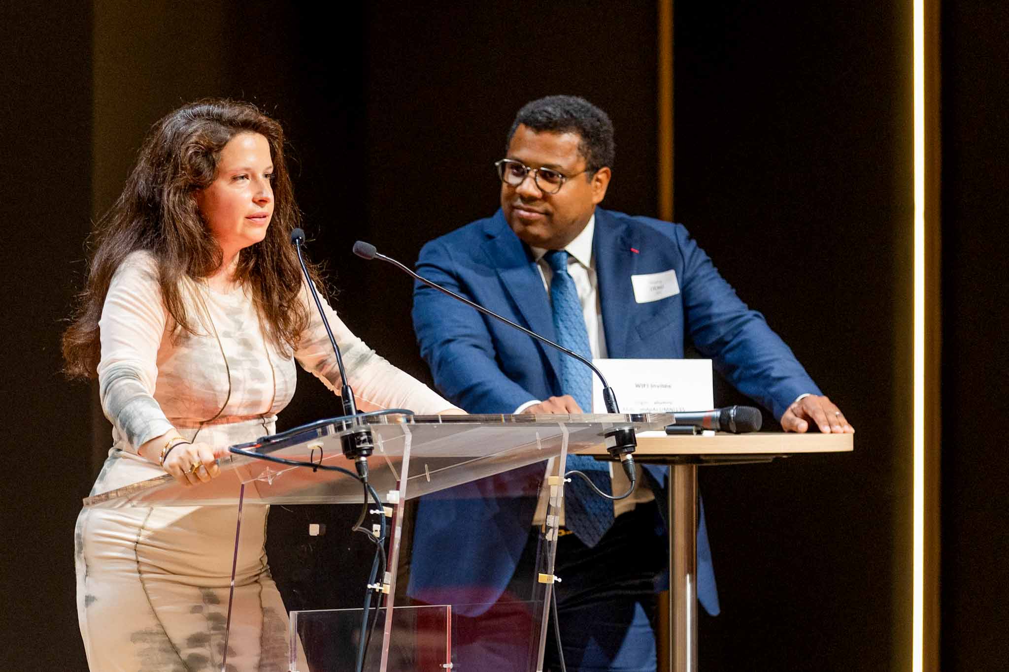 Mot d’accueil de Fabienne Tiercelin (Directrice Relations Extérieures, Communication et RSE, déléguée générale EXCELLENCE SMA), Boris Rowenczyn (Président Ponts Alumni) et Thierry Duclaux (Président de la Fondation des Ponts).